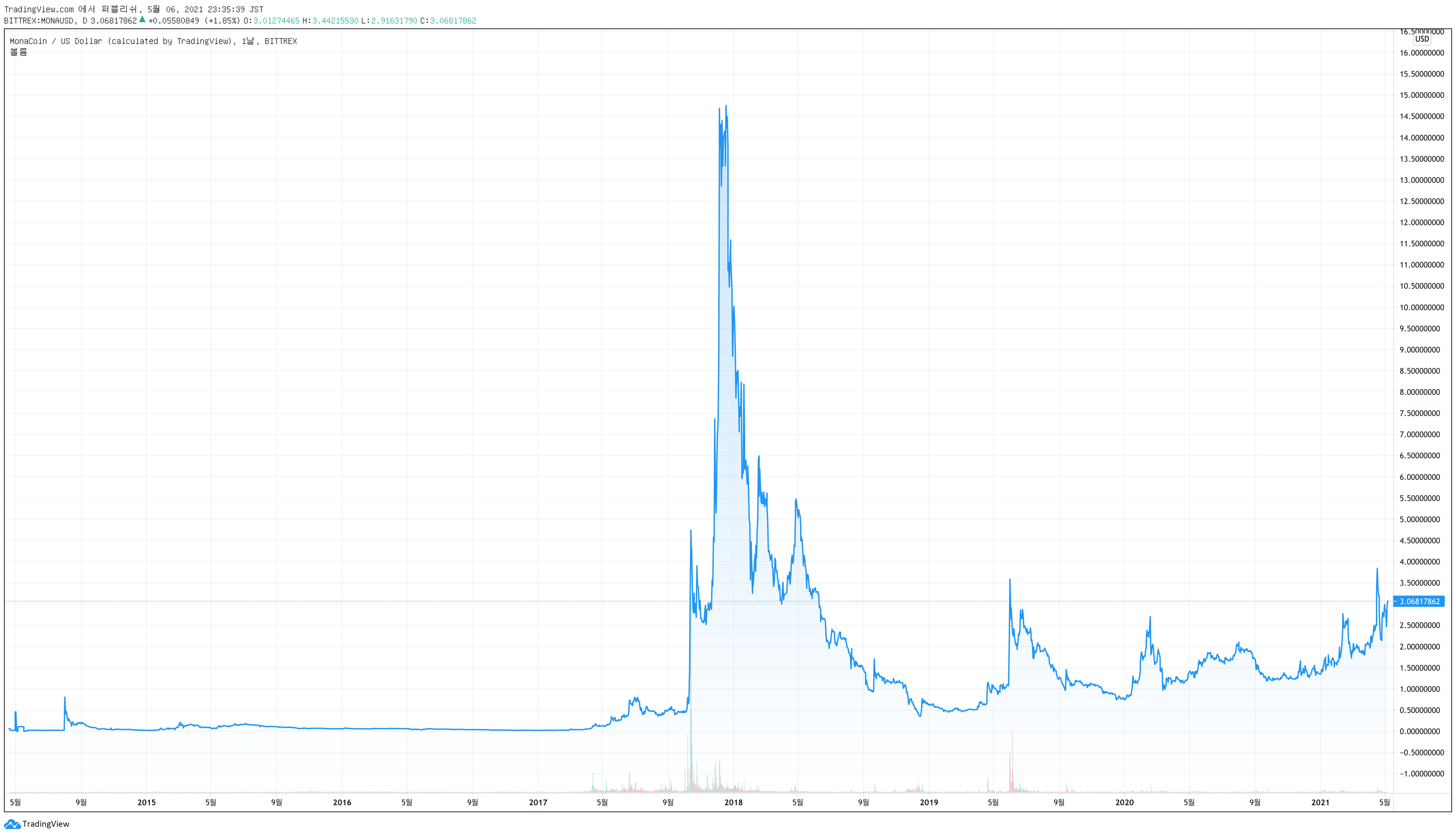 4. 모나코인(MONA)의 과거와 현재의 차트 분석